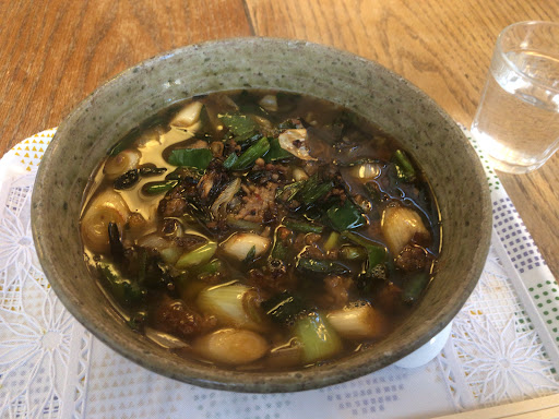 本日、お昼にお邪魔しました、♯中華料理一龍♯さんです。 初訪問です。夫婦でやってるみたいで、丁度お昼時なのにお客さんは二組、4人ほど座れるカウンターと、テーブル席二つ、座敷席一つの小さなお店です。メニューを見て一龍ラーメン🍜(750円)と言うものを頼んで見ました。早速の着丼です。見た目は余り美味しいとは言えない見た目ですが、スープを一口、これは中々の町中華の味、鶏ガラか?ピリ辛醤油味、麺は中太麺、具材がぶつ切りネギ、ニラ、ニンニクの茎、ミンチ他結構色々入ってました。食べ始めたら箸が進みあった言う間に完食です。食べ終わった後も何か鼻にラーメンの味が残っていて中毒性になる味です。ご馳走様でした。車で行った為、駐車場🅿️があるのか聞いて見たらお店向かいの新城皮膚科医院の駐車場に置ける見たいです。(日曜日か休診日だけ)今度はチャーハンを食べにまた...