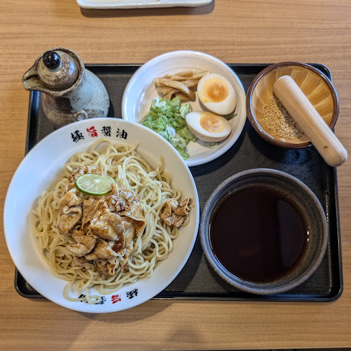 今年の夏の限定麺 冷たい麺と冷たいつゆです 肉以外の具材は別皿で提供 肉は甘い味付でそのままでも美味しい 細ストレート麺はキンキンに締められ 程よい硬さ、喉越しも最高👍 酸味のあるつゆと合います 昆布酢が添えられて味変しながら食べれます