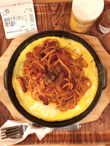 大盛り系のメニューも有りますが、本日は鉄板ナポリタン単品をオーダー。 彩り的な要素の薄皮一枚の玉子焼きの上にナポリタンがキレイに盛り付けられています。大盛り感はあまりなく、大食な方には少し物足りないかも知れません。 味付けはトマトの果肉感じるケチャップソースがたっぷりと太麺に絡んでおり、なかなかの味付け。しかしスパが若干柔いので、もう少し炒めるか、それこそフライヤーで油通しした方が噛み心地やコクが出て良いような気もします。 まんが喫茶なので充分といえば充分なのてすがもっと美味しくなると思うと勿体ない気がしてしまいます。 平日午後の利用はかなり静かで落ち着いてますので、ダラダラと1人時間...