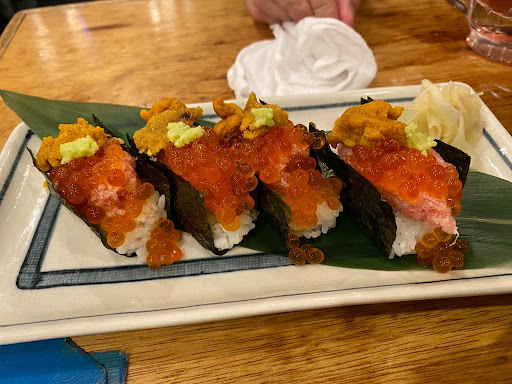 Sashimi, grilled shellfish & crabmeat over rice in a buzzy, colorful venue with counter seats.