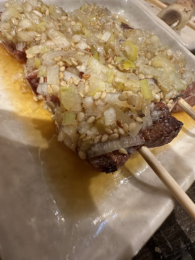 I particularly enjoyed the variety of dishes available, including the Hachinosu Ponzu (honeycomb tripe with ponzu sauce), which was a unique and delicious preparation of tripe. The Reba Teki (grilled liver steak) was also nicely cooked with a great texture. The Taiwanese Pork-wrapped Kushi Katsu was a standout dish with its creative combination of crispy pork, crunchy mung bean sprouts and chives, and generously spiced minced meat sauce.