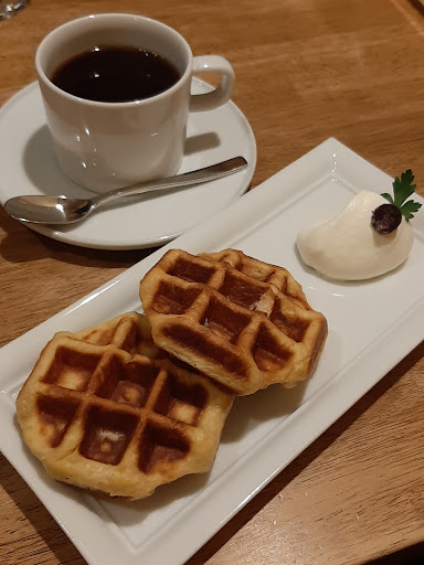 Read more学生時代から通っています。 非常に落ち着いた店なので、大人数で友人たちと楽しくおしゃべりしたい時には向きません。 ですが、休みの朝、ゆっくり美味しいワッフルを食べたくなった時や、パートナーと落ち着いて話しながらお茶をしたい時など、ほっと一息つけるとても良いお店です。 店長さんは最初はおもてなし致します!!っタイプでは無いし、ニコニコもなさってないですけど、店内がいつもとても綺麗なことや、グラスに曇りひとつないところを見ても、毎日の営業を大切になさっているのを感じます。 他のクチコミをみて、子供連れの方が注意されてしまった件も、雰囲気考えれば想像がつきますが、悪意をもって言ったとは考えにくいオーナーさんですし、片方の意見だけで評価がつくのはもったいないと思い、書かせて頂きました。 ワッフルはいつもふかふかさっくりの焼きたてで、モーニングはとても贅沢な時間になります。 私は色んな大切な人を連れていきた...