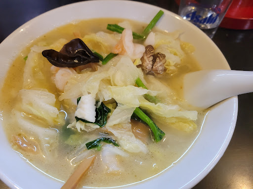 Read moreバスを逃し外は寒すぎてどうしようかという時に先程通りすがった中華が気になり、19時になる少し前に入店。三連休の中日でお夕飯時。忙しそうにしていたが、女性が素早く席を片付け座らせてくれた。カウンターに座りメニューを右隣のお客さんが差し出してくれ、すかさず左隣のおじさまがビールセット1,080円のパンフレットを手渡してくれ、既にできあがっている様子。海鮮ラーメンは塩っぱいものを求めている海鮮好きにはたまらなく美味しかった。帰り際におじ様と会釈。お腹いっぱい、帰りのバスでは安静に。。 ※タバコが吸えるよう。親が喫煙者のため懐かしい香りとしか思いません...