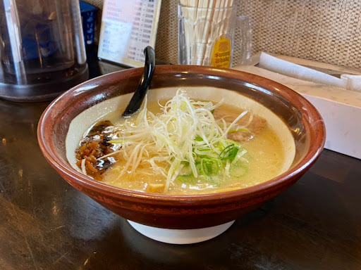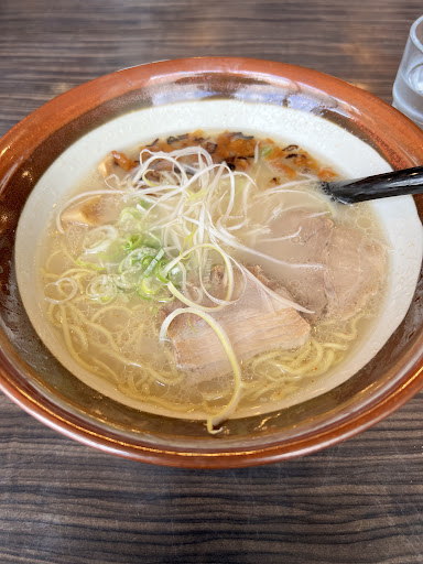 Read more店外の見た目が海賊🏴☠️怖い😅 でも、一度食べてみよー❗️と、勇気全開でin💃🏻 まず、店員さん2人がご妙齢👵🏻のママ❣️✨😄 お二人が調理、接客をしています😊🙇🏻♀️ このギャップで、既に美味しいが確定。💯 店内満席、どんどんママさんが調理していきます。 そこら辺のカッコつけオラオララーメン屋さんに ママさんの麺捌き、客捌きを見てほしいです。 素晴らしくカッコよく素敵でワクワクします。❣️ 味はもはや語るなかれな、パンチ濃厚豚骨に 技アリな刻みネギ、ホロホロチャーシュー 食べやすい硬さの中細麺 対比的な、あま〜いタレのチャーシュー丼⭕️ チャーシュー丼は、味変用に 山椒パウダーも頂けます。🙇🏻♀️ トータルで一度のランチとしての味の完成度や満足度も凄いですが、雰囲気や柔らかな接客も素晴らしです。🙇🏻♀️ すごく素敵だったのが、お会計の時 めちゃめちゃ忙しいのに、ママさんが わたしのお会計を調理より先にしてくださり 『ありがとうね❗️まだ今から仕事でしょ❗️今日も暑いけど頑張ってね❗️』 と、笑顔で見送ってくださった事です。✨😊🙇🏻♀️ 腕のあるママさんは、全然威張っていなく 優しさ溢れる接客とは裏腹の パンチラーメンで勝負している コロナ禍だからこそ、見習いたい所作は 美味しいからまた来ますね❣️と、 ついつい言葉になる、素晴らしい名店でした🙇🏻♀️ 絶対また行くし、ママさんに逢...