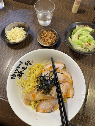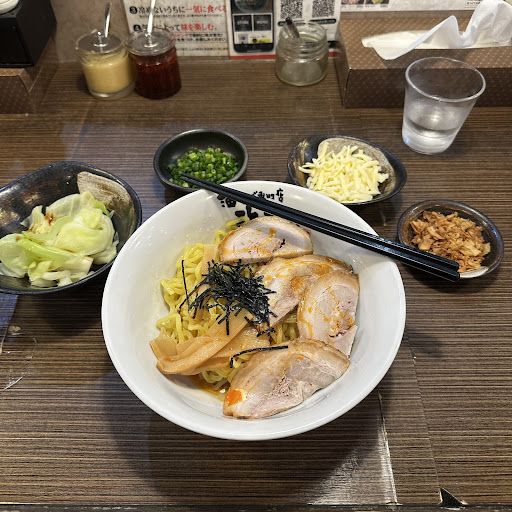 Read more平日ランタタイムに何度目かの訪問。 客数はそこそこで混んでいるというほどでも無いが稀に行列待ちさせられることもある。昼12時直後であれば問題ない。 よくある券売機方式で頂くメニューを決めて店員へ渡すことで注文が完了する。 注文してから少々調理時間が長めなのか待たされる傾向にあるが、それはマクドナルドや吉野家などのファストフードと比較してということなので許容出来る待ち時間と言える。 歌志軒チェーンなので主要メニューは汁が殆ど無い油そば。 最近流行している濃い味付けで、客層もそれへ準じて若者が多い。 カウンターに置いてあるラー油は辛味がほとんど無く、辛味が強く欲しければ胡椒や豆板醤を使った方が良い。 ラー油があまり辛くない傾向は油そば品目の「焔」へも引き継がれているのか辛くなく、むしろ自分で好みの味へ調味料やサイドメニューのトッピングで近付けていくというのが醍醐味と言える。ただその醍醐味は良くも悪くも「星3つ(普通)」という評価に繋がってしまうが。 もし満腹感を得たいのならば油そばの他にサイドメニューで「焼豚...