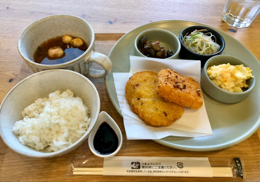 Read more今週オープンということで行ってきました。 日替わりランチは1000円。 この日は火曜日。 『フライ定食(コーヒーセット)』です。 フライは海老カツとコロッケ。卵と玉ねぎのタルタル、春雨サラダ、お豆の煮物の3種小鉢。 少食のため今回は抜いてもらいましたがサラダも付きます。 ※ご飯、お味噌汁も少なめにしていただきました