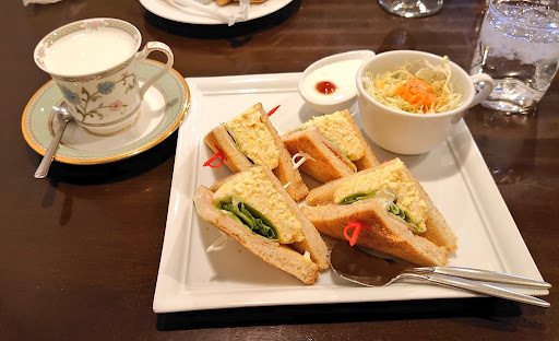 Read moreモーニングで利用させて頂きました🍞 サンドイッチモーニングのパンがとても美味しくて気に入りました😄 たまごサンドでずが、マヨ少なめの軽めのタマゴサラダがパンの風味を邪魔してなくて相性抜群です❣️ 主人と一緒に行き、主人は期間限定?数量限定の茶そばも頼みましたが、 甘めのおつゆにお茶の風味がふわっと香りとても美味しかったです😋💕 お好みで特性の珈蔵油(ラー油みたいな感じの油)をかけるとピリッとした辛みプラスされて アクセントになってさらに美味しくなります🥰✨ アイスコーヒーにはコーヒー氷が使われており 細部にまでこだわりが感じられ、 酸味がなく飲みやすいスッキリした味わいでした🙌 ただお店が交差点の角にあり、 駐車スペースが少なく信号から近くて停めづらいのが難点ですね。 私は近所なので徒歩で利用することにします(笑) 味も量もとても満足できるので、 また利用...