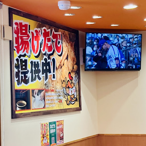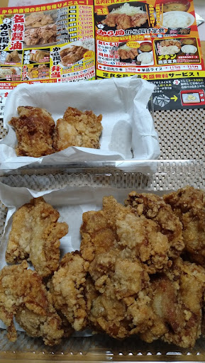 日曜の14時半頃伺いました。 客席が7割程埋まってましたが、食べてる間にどんどん帰って行き、帰る頃には1組位になってました。 店内に入ると店員さんに促され、券売機?で発券して、隣に設置してあるお茶と水のドリンクバー?でお茶を入れ、席に座りました。 しっかり毎回揚げてるのが分かる程、少々出てくるまでに時間掛かりますが、唐揚げの一つ一つの大きさ、チキン南蛮の巨大さは圧巻でした! 持ち上げるのに割り箸が折れそうです笑。 フードコートの様に返却口に食べた食器を戻すシステムです。 その脇に、ドレッシング(青じそ、ごま、マヨネーズ)、ふりかけ(ゆかり、たまご?)、ソースが置いてありました。