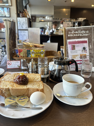 It's hard to choose a "Morning" coffee shop. I was one of you guys, but my journey may have ended to find a reasonable, tasty place. This place offers their "Morning" coffee meal for 550 yen! Although their coffee isn't the best among all the competitive coffee shops, their food makes it up. I felt that the pour of the coffee was a little poor. It lacked much fragrance and aftertaste, so I think they have room for improvement.