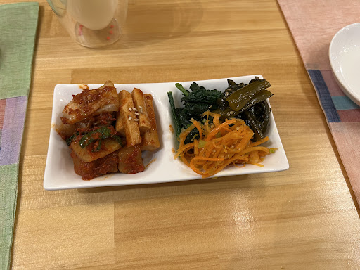 Read moreオシャレなカフェのような清潔感のあるお店でした。 おにいさん一人で切り盛りしていて愛想が良く質問にも丁寧に答えてくれて接しやすかったです。 はじめにキムチやナムルの盛り合わせを注文しました。その前にお通しも出してくれました。 キムチは自家製で辛みもあってさっぱりしていて美味しい。 キンパは小ぶりでひとつ150円で食べられます。 ゴマの葉に巻いて食べたらこれがまた美味しくって何個でも食べられる感じでした。 チヂミがカリカリで鉄板で出してくれて熱々で最高です! 辛くしてほしいとお願いをしたら辛さも強くしてくれました。青唐辛子の要望もあれば出してくれるとのことでした。 カムジャタンを一人前で出してくれるところってあまりないので他の料理も食べられるから良かった。 ビビンバも鉄板で熱々で美味しかったです。 どれも美味しくてお酒が進みます。 韓国焼酎のフルーツとミックスのものが珍しくて ザクロのチョウンデー焼酎をいただきました。 飲みやすくて私は好きでした。 飲み比べもできるみたいです。 他にも韓国のビールやマッコリ等お酒も楽しめます。 韓国料理はハズレのとこ結構ありますがここはアタリでした笑 ひとつ言うならメニューをもっと増やしてほしいです。 もっと色んなもの食べてみ...