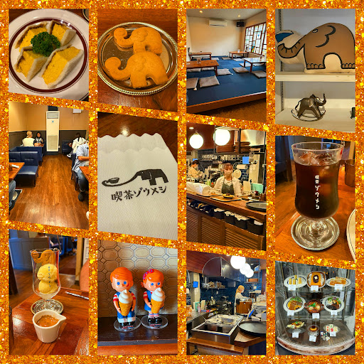 That's how we ended up taking the half-hour trek from our hotel. It wasn't quite full when we arrived, so we got a table right away. We noticed there were a lot of elephant tchotchkes all over the place including their parfaits and ice cream sundaes. I ordered the ¥1,078 Egg Sandwich with ground beef, pork miso, and a mix of mustard and Kewpie mayo. That was one thick slab of egg, pleasantly fluffy encased in melty slices of milk bread.