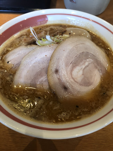着丼すると、中々のボリューム。 スープを一口飲んで、麺を啜る。 甘い。炙り焼豚を一口、香ばしさと脂の甘みが一気に広がる。そのまま追い麺、美味しい。 メニューには熟成からくる独特の旨味、辛味が特徴の赤味噌とあったが、相当甘く感じました。