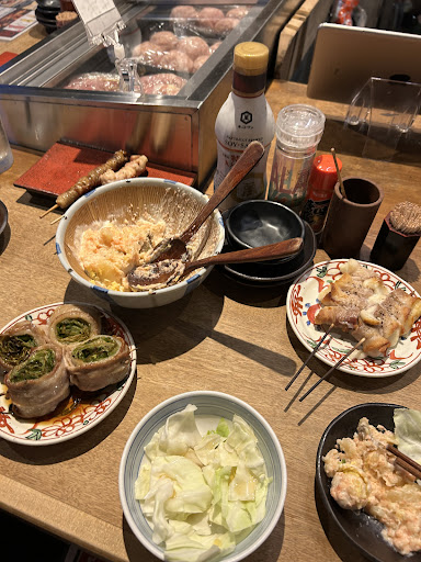 串は濃いめの味付けこちらはタレばかりで すぐ飽きてしまう。 一品料理、味のない物がちらほら、それとワンパターンだと感じた。