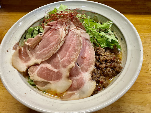 ラーメンの麺は太目の平打ちちぢれ麺 ちぢれ麺なのでスープが絡む! 醤油のスープの味は濃い目ですが スープ自体はあっさりしていました。 令和台湾のスープはブレンダーで泡立てた泡系で 口当たりはまろやかでクリーミーですが 唐辛子のピリッとした辛さがあります。 まぜそばは角切りチャーシューまで乗っていて かなり食べ応えあり! 私はこの3種類では令和台湾が好みでしたが 昭和台湾も美味しそうだったなぁ〜