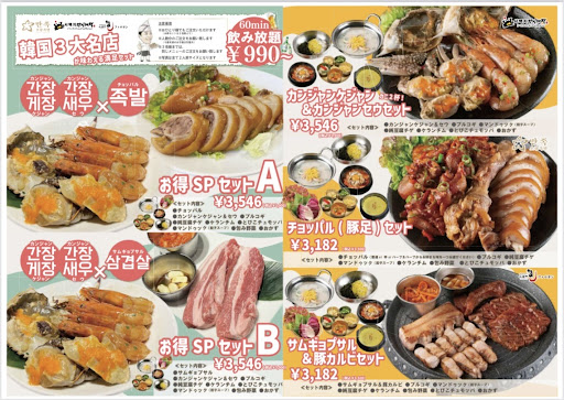 結局、私たちはカンジャンケジャン&カンジャンセウのセット2人前とサムギョプサル&豚カルビセット2人前を注文しました。