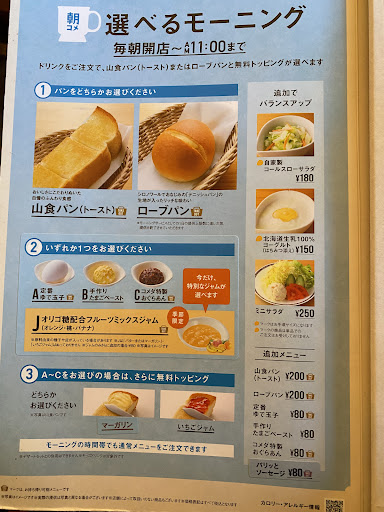 対面で二人掛けの席だと荷物が多いときに置き場所があまりなく窮屈です。他のコメダも同じですが。 ふと視線を上げると、換気扇まわりの黒い汚れが目立っているのと、厨房付近天井にホコリが溜まってるのが気になりました。 食事中に汚いものは見たくないですね。