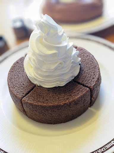 デザートにミニシロノワールとクロネージュを☆ どちらも、アイス→ホイップクリームに変更可能なので、クロネージュだけホイップクリームに変更。 ベースが温かいのでトロっと美味しい! 今だけかな?ミニシロノワールはバード型でしたー♡かわいい♡ クロネージュはココア風味のバウムクーヘンなんですが、思ってる以上に真ん中の穴が大きいので、バウム部分の厚みは少なめです。 だから真ん中に置くアイスorホイップがたっぷり乗せられる。