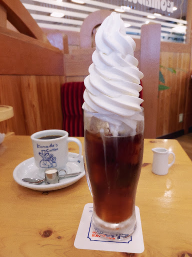 お茶☕しようというコトで奥さんとコメダでティーTIME😋 小腹空いたよねって話でシロノワールにする?サンドイッチ?って悩んだケド改めてメニュー見るとアイスコーヒーとそびえるくらいソフトクリーム🍦がてんこ盛りに載ったコーヒーフロートと値段100円しか変わらんのやね😳サンドイッチ🥪もハンバーガー🍔も2人でシェアするには十分すぎるぐらいの量が載って👉600円台って本当に凄いなぁ〜って感動すら覚えてしまったわ😳😳😳 マンガ雑誌もジャンプとコロコロだけじゃなくって👉ヤンジャンあたりも置いてくれると嬉しいケド💦客層見てたら爺様婆様🧑🦲🧑🦳🧑🦲🧑🦳ばっかりだったからソコは求めちゃいけないのかもな…🤔 本日も溢れて溢れてつくえを拭きまくったココアフロート🍦にぬるぬるウインナーコーヒー☕にトーストにしても値段が変わらないココロ憎いサービスしてくれはるミックスサンド...