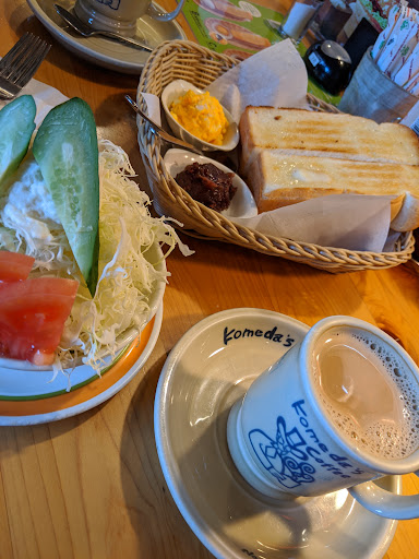 Read more思い出したのでレビューします。 このお店は独身時代からよく行ってました。 時を経て2人子供連れて年末に来店。 ここのモーニングのパンが大好きな子です。 いつも子供達は一つのドリンクは飲みきらないので、ドリンク一つにパンは追加で頼み、デザートなども頼んでます。 しかし、この年末のモーニングに行ったときは、新人の子がオーダー取りに来て、「ドリンク一つ、パン一つ追加で…」と注文すると、「子供大きいので、一人一つ、頼んで頂かないと…!」と言われました。 今まで追加できた旨を伝えても、「できません!」との事。 他の人に聞きにもいかず、偉そうに否定されました。化粧の濃い若い子です。 不安そうにする子供達に恥ずかしい思いさせてしまい、苛立ちました。 厨房に聞きに行くよう言おうかと思いましたが、とにかく混んでいたので、こちらが折れて人数分のドリンク、デザート2個頼みました。 その後、本部に確認するとやはり、パンは二百円で追加できるとのこと。 若い子に謝ってほしいです。 もうここには行きません。 若い子も、私達には来て欲しくないでしょうから、若い子の思う壺ですね。 高蔵寺の方のコメダも同じオーナーらしいので、...