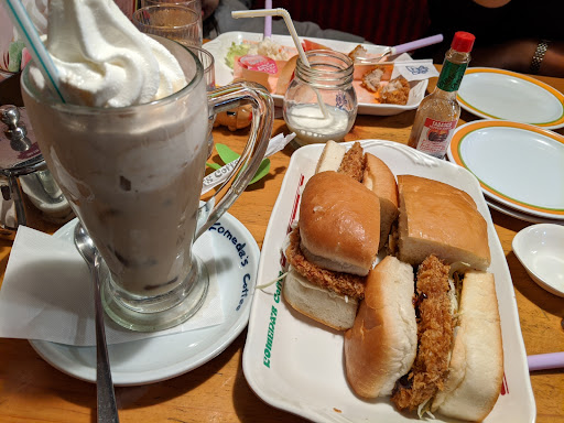 Read more期間限定のグラコロを食べに11時過ぎに行きましたがほぼ満席でした。 モーニングを少し過ぎた時間だったので出来るまでに20分かかると言われましたが豊富な雑誌があるので知らない間にすぐ運ばれてきました。 コメダのハンバーガーはとりあえず大きめ マックより大きさも値段も1.5倍くらいありますかね。 揚げたてのコロッケはカリッとして4種のチーズは伸びるというわけでなくふんわりと香りと味がきます。 ドリンクと合わせると1000円は超えてしまうので雰囲気も含めてファストフードとしてのメニューではなく喫茶店の食事という感じでボリュームも含めて満足ですね。 グラコロ¥58...