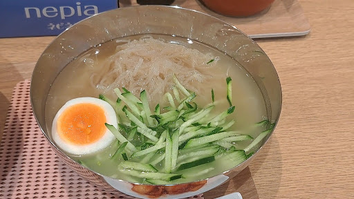 冷麺は刻みきゅりがたくさん入ってて スープの色も綺麗でおいしそうに見えます