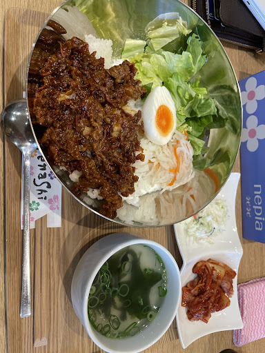 Read moreランチを食べに初めて入りました 店内は可愛らしい感じです。 ママさんも感じの良い方です! 私はDのハーフピビンバand冷麺を注文! 冷麺は好みによって「酢」を足し ピビンバは備え付けのタレを入れ混ぜ合わせて食べます あの〜。 ハーフサイズを頼んでしまったため器が小さくピビンバとタレを混ぜ合わせる時ちょっと混ぜにくかったです💦
