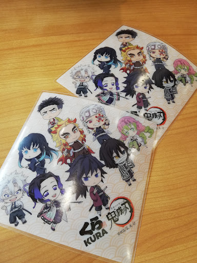 新々→また鬼滅の刃と最後のコラボをするみたい(第5弾) 今度は下敷きだそうだ(4種類) しのぶさんと義勇さん2人が載ってる下敷きが欲しい😍 映画と並行してのくら寿司×鬼滅の刃コラボで16日~だったかな(•̀ᴗ•́)و ̑̑