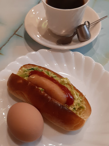 Read moreこっち方面に用事があったんで。 駐車場は店を挟んで自分の左右に二台づつ計五台停めれます。 モーニングはトースト3種類とホットドッグがあったんでホットドッグにしました。150円で追加が普通なのに珍しい。それにサラダと茹で玉子が付いて来るんでお得かな。常連さんが多い昔の喫茶店ですが、新規の自分でも居心地は悪くないです。 灰皿は無かったんで禁煙だと思いますが、どうなんでしょう。 ホットドッグのキ...