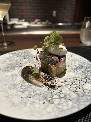 特によかったもの ◎秋刀魚と天狗茄子 こちらはテリーヌに仕上げてあり、上に秋刀魚の炙りをあしらえたもの。ソースは秋刀魚の肝を使ったもの。とんでもなく美味しいです。
