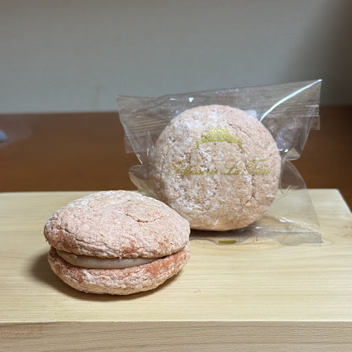 ヨーヨーはダクワーズ生地でクリームをサンドしたお菓子、ダクワーズ生地には苺が練り込んであって、表面からは分かりづらいかもですが断面は真っ赤な色合い、その甘酸っぱい味わいに中の苺ガナッシュのクリームがマッチしていて美味しいです。