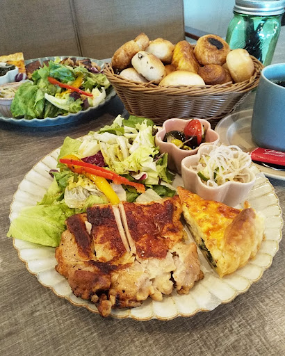 モーニングも人気のようですが、11時からのランチはセットを注文で、パンの食べ放題が付きます。 デリサラダプレートセットのサーモンのハニーマスタードをたのみましたが、たくさんの野菜、キッシュ、2種のデリが見栄えよくワンプレートで盛られ、インスタ映えします。メインのサーモンのハニーマスタードはグリル加減が程よく、味付けも甘くマスタードのパンチの効いた自宅では食べられない味に感じられ、美味しかったです。 デリサラダプレートのメインは他にはチキングリル、トマトハンバーグ、ローストビーフ、シーフードミックスフライなど。 パン食べ放題のコーナーには、このお店の売りの極食パンをはじめ、ベーグル、レーズンパン、ブリーベリー、ミルク、メープル、バタークロワッサン、チョコデニッシュ、もちっとナン、スフレブレッドなど、ちょうど良いミニサイズのパンがたくさんありました。 カゴに好きな分だけ取るスタイルです。 そのままでも、もちろん美味しいですが、備え付けのオーブントースターで温めることもできます。 どのパンもクセになる美味しさで、何度もおかわりしてしまいました。 特に紅茶とアップルのパンがお気に入りです。また来店した...