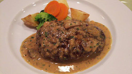 メインのハンバーグに付け合わせの野菜が少し。 ハンバーグは適度にみっちりな感じ。 ソースも合っていて美味しいです。