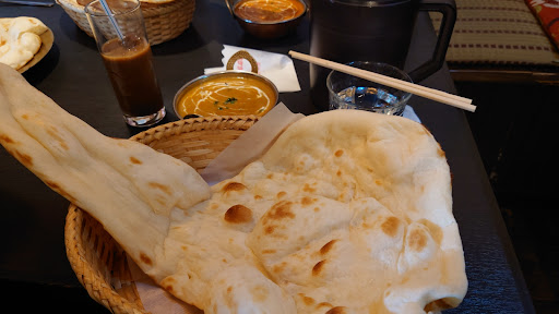 平日の12時頃に行き、ランチセットでシーフードカレーをいただきました。ただもう少しシーフードらしい具材を入れて欲しかった😅 2025年7月末に訪問しましたが、様々な値上がりを受けて、メニューも全体的に値上げしていました。具材が少ないのも仕方がないのかもしれませんね… カレーは辛さを6段階から選べるので、辛いのが苦手な人でも安心です。ナンは今回はプレーンでしたが、パリパリとふわふわが絶妙に共存しており、いい焼き加減でした。インスタ映えを意識したおかしな方向性のお店より、真面目に美味しい料理を出してくれる堅実な良店ですね。
