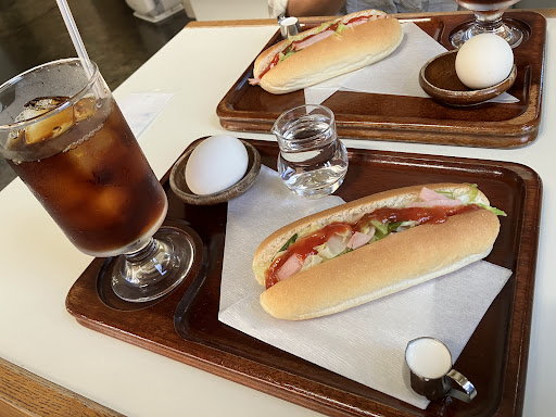 Read more戸田川緑地歩いてすぐの喫茶店☕️ ◆アイスカフェオーレ¥500 ◆モーニングサービス【ドッグパン•玉子】 ドッグパンモーニングは【ハムとキャベツのドッグパン🥖とゆでたまご🥚】とドリンクがワンプレートになっています。ストローはキーコーヒーのパッケージ。 アイスカフェオーレのガムシロップは別で付けてくれます☺️ モーニングは地元...