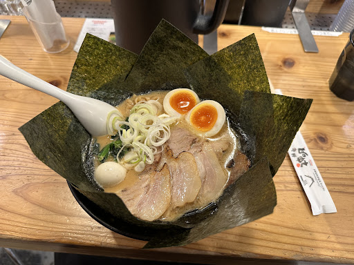 I had some trouble with the menu at first because they just give you a QR code to order from, and my phone didn't have great reception, but it worked eventually, which was good because the online menu had an English version. Great for tourists like me. The food was delicious! I particularly loved the nori "bowl" on the ramen, which had a really delicious broth and a perfectly cooked egg.