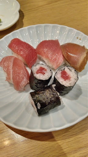Read more2019/11/18 二度目の訪問 前回よりも空いている。寿司食べ放題でスタートしました。すぐにお寿司が運ばれてきたが、ネタは最高!! 大トロから中トロ、赤身、ヅケ、鉄火と申し分ない。 ガンガン食べるうちに10皿完食に到達。ラストオーダーですと店員さんが声を掛けてくれましたが、今日は打ち止めにしました。 前回も満足しましたが、今回は提供スピードも早く大満足でした。 ★を4から5にアップさせました。 素晴らしいお店ですね! ごちそうさまでした。