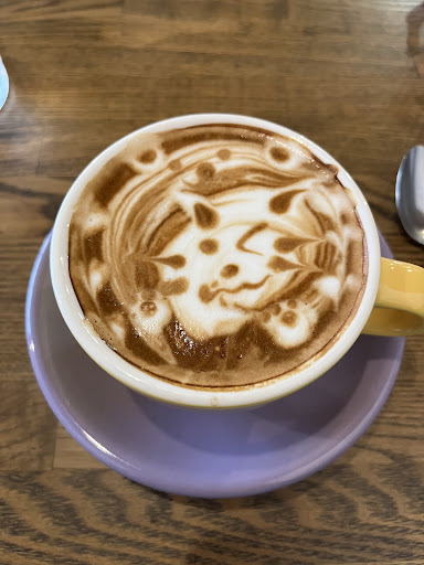 After my meal, ordered a cafรฉ latte. The latte art the owner created was almost too cute to drink!