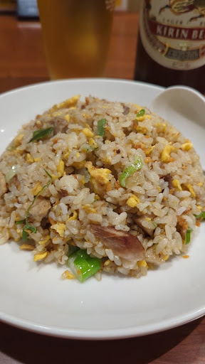 I ate Taiwan ramen and garlic fried rice while drinking bottled beer. The spiciness and garlic worked well, and the bottled beer emptied in no time. The appetizing aroma of garlic and the strong spiciness will make you addicted. The Taiwanese ramen soup had a unique taste even though it was spicy. The garlic fried rice is cooked to a light and fluffy texture, was also very good.