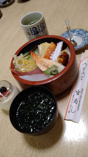 Read moreよくお昼にお邪魔しています。 ランチメニューは、にぎり750円、ちらし750円、おまかせ1200円とお手頃価格。 学生の私でも手が出る金額です(^-^) いつもおまかせを注文しますが、まぐろやたい、サーモンのほかいくらもあって結構お腹一杯になります。 お寿司ももちろん美味しいのですが、セットの具たくさん味噌汁とデザートの手作り牛乳プリンも結構美味しいです。 席数が少ないので時間を見計らって行った方がいいかも。 13時を過ぎるとほとんど人はいないです。 営業は基本的に平日でしょうか、祝日に行ったときは持ち帰りのみでした。