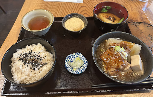 つきたてセット(850円)を注文。 大根おろし餅(餅4つ)ときなこ餅(2つ)に、ほうじ茶がついてくる。 大根おろしは適度に辛くて、しっかりとした味わい。きなこ餅はサラサラとしたきなこがまぶされていて優しい味わい。