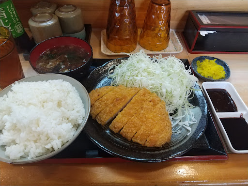 とにかくお値打ちで、とんかつ定食をごはん大盛で頼んだら、とんかつに赤だし、たっぷりのキャベツ、漬け物、味噌だれととんかつソースが付いて税込み550円! とんかつは先に揚げてありましたがそんなに冷めている訳でもなく、美味しく頂けました。むしろ店主(たぶん)のワンオペのわりにお料理が出てくるのが早かったです。別のお客さんが頼んでいたとり天丼もうどんのセットもスゴいボリュームでした。