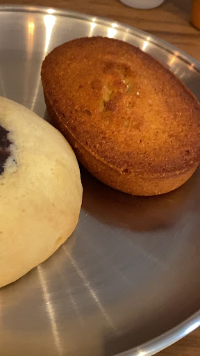 ‘24/1月 ◆あずきバタークッキー¥450 ◆フィナンシェ¥270 ◆アイスコーヒー¥500 クッキーのラインナップが豊富✨ あずきバタークッキーはホワイトなクッキーに四角くバター🧈がのって、バターのしたにあんこが見え隠れしてる☺️「あの部分だけのあんこかな〜?」と思いながらひとくちパクッとすると、しっとりほろほろのクッキーのわりとすぐあずきたっぷりのあんこが‼️コレは見た目以上🤩途中からバターも一緒にパクッとするとそこはバターのコクと塩みが加わりあんこもクッキーもさらにおいしくなりました😋 フィナンシェはピックアップするときにトングではさんだ感じは「あれ⁇硬い?」と思うほどしっかりとしたカタチ🥧コチラもひとくちパクッとすると硬いと思っていたのはサイドの外周のみでなかはしっとりやわらか〜☺️しかも外周には生地とバターの凝縮されたところなのでとてもおいしい✨このフィナンシェに出会えてよかったと思ったのは、私自身フィナンシェ好きに育ったことで今回フィナンシェをチョイスしたことです👍