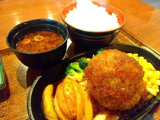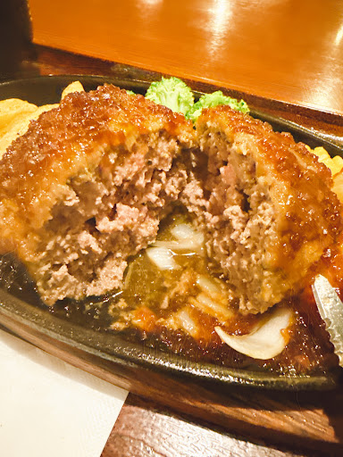 P.S. 後日再訪しました。平日のランチで、入店したのが12時少し前ということで10分以上待ちました。ちょうど日替りランチ(750円)がハンバーグだったのでこちらをオーダー。ごはん大盛り無料も嬉しいところ。ハンバーグは肉々しくて美味しく、ボリュームも十分! 前回食べた粗挽きビーフハンバーグ定食(1000円)との違いは、載っているのが鉄板ではなくお皿、付け合わせが温野菜かサラダかといったところで、メインのハンバーグは同じもののよう。日替わ...