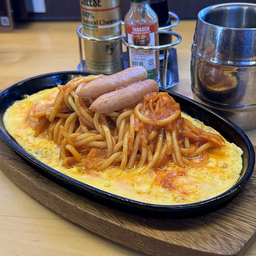 この日いただいたのはレトロスパゲティー、アツアツの鉄板に卵を敷いてその上にケチャップパスタを乗せた名古屋の喫茶店ではお馴染みのいわゆるイタスパ、たまに食べたくなるんですよね、コレ。麺はもっちりした食感でしっかりコクを感じるソースがバッチリ馴染んでいて美味しいです。卵も時間が経っても固まってボソボソになることもなくイイ感じ、それにたまに鬼のようにたっぷりタマネギが入っているお店もありますがココのは量も控えめで細かくカットしてあるのでタマネギが得意でないワタクシでも美味しくいただけました。欲を言えばソーセージが赤ウインナーだったらワタクシの理想に完璧だったんですが、とは言え美味しくいただくことができました。サービス面は残念なところもありましたけど。