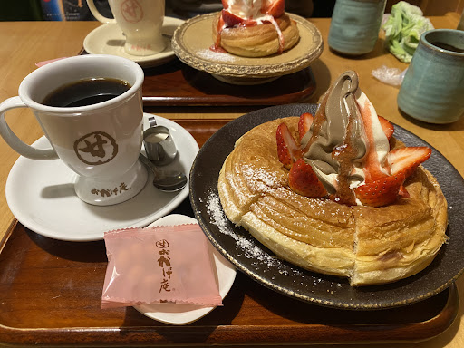 Read more名古屋と言えばのコメダ珈琲の進化版、おかげ庵へ。 上飯田店を利用させて頂きました。 何となくコメダに似ているところやメニューなど有りますが、コメダよりサイドメニューがかなり豊富でした。 団子を席で焼いたり、デザート系もかなり豊富なメニュー数でした。 席で焼ける団子か迷いましたが、今回は シロノワール極みという新商品?を注文しました。 一人で食べるのでミニを注文しました。 上のソフトクリームがチョコレートかチョコレート、ミルクとミックスか選べます。 ぐとくなりそうだったので、とりあえずミックスを注文。 ミニシロノワール極み¥570 アイスラテ¥450 シロノワール極みは苺ものっていて、桜っぽいチップものっています。 彩りにこだわった極みということでしょうか? ただ苺は結構小さくカットされたのが四つ。 ミニだからか苺がのってる有り難みはなかったです。 熱々のデニッシュパンとソフトクリームの相性は抜群です。 個人的には極みをつけるならもう少し尖った内容か、拘った感じが出ていると良いかと思いまし...