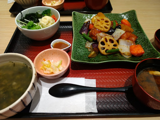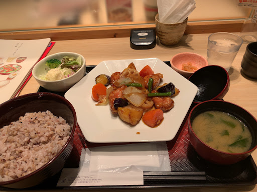 Read moreチェーン店の定食屋。鶏と野菜の黒酢あん定食が人気メニュー。最後に食べたのは学生の時なので6年前かな。ここの店舗の調理法が悪いのかわからんが明らかに食材の質と味が落ちてる。コロワイド傘下になって使う食材や方針が変わったんですかね?三元豚と野菜の黒酢あん定食を注文したが、豚の唐揚げが美味しくない。肉はかたく、旨みを全く感じない。野菜(にんじん、なす、いんげん、ジャガイモ、たまねぎ、れんこん)は彩りはいいがジャガイモは青臭く、にんじんが妙に甘く、違和感を感じた。とにかく安っぽく仕上がってる。五穀米もお客さんに出すものとしてはレベルが低いかな。米をよくみるとパサパサしてて美味しそうに見えない。味噌汁は即席のもの感が強い。唯一、ポテトサラダは美味しいと感じた。ドレッシングの量も丁度よく、旨い。だが、お店には申し訳ないがこの味とレベルじゃ閉店するのも頷ける。他の店舗は上手に調理して、美味しい所もあるかもしれないが今後は利用しないと思いま...