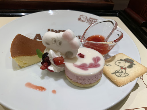 Read morePeanuts ate my fav and so I couldn’t not to visit this place. The decorations were great. All peanuts related ! Many places to take cute pic. In my opinion, people do not come to those character places to have a heavy lunch or dinner. Most of the food on the menu were out of dessert options. I had matcha snoopy latte and few sweet dishes. I was very happy visiting this place and emotions were overwhelming. If you like Snoopy this is your place. If you are not into a character you might find this place very strange as you will be seeing people taking pic here and there and adoring dishes and you will have no clue what...