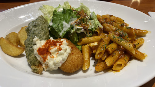 ■数店舗先にあるマリノと同じ値段で1/10位の価値のパン食べ放題を主軸に置いており、パスタやサラダもショボイ。