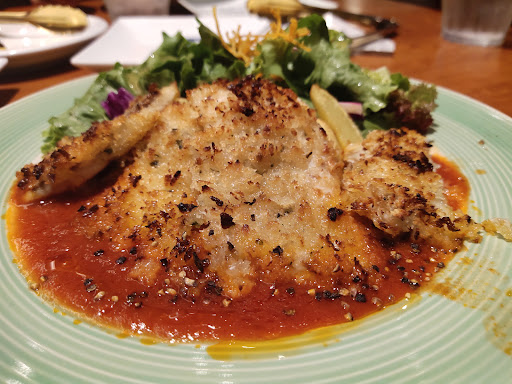 ■チーズフォンデュの具材入れが小皿過ぎて、狙いの具材を刺しにくい。 ポテトを刺したら、刺した衝撃&狭すぎて接触した隣の別のポテトが小皿から落ちた。 鶏肉が恐らく鶏ももなのだけども、鶏皮と脂が半分程度の部分に当たってしまった。 脂面をもう少しカリカリに焼いていれば味も楽しめるだろうが、脂部分が多すぎて脂っこさが強く来てしまった。 チーズフォンデュのチーズは美味しい。 但し少しシャバシャバ気味で、具材を付けてチーズを纏わせた後、口元に運ぼうとするとチーズが垂れ落ちそうになる。 提供する皿の中にチーズフォンデュの受け皿がない。