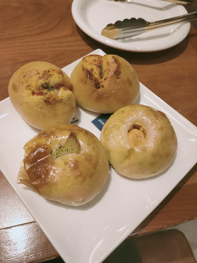 Read moreパン食べ放題に釣られて入店しました。 平日のランチ時間でしたが席が空いていたので直ぐに席に案内して貰えました。 ランチメニューからパスタと肉料理を選び、ドリンクバーとソフトクリームバーも付けました。ランチメニューは1,380円〜でこちらにパン食べ放題とプチサラダがついています。これにプラスでドリンクバー等が別料金で選べるスタイルです。 最初に出てくるプチサラダは名前の通りのプチサラダ。ドレッシングがシーザー、バルサミコ、キャロットから選べました。付け合わせ程度のサラダですが今時この価格帯では可もなく不可もないです。メイン料理が運ばれてくるまでにパンを食べました。入り口の前にパンコーナーがあり、パン焼きの従業員さんが様子を見ながら追加しているようです。全部で18種類程度ありました。クロワッサン、クリームパン、レーズンパン、チーズパン、明太パン等甘い系と塩っぱい系があります。どれも小ぶりのサイズなので色々楽しめます。昨今の値上げラッシュの最中でよく頑張って出してくれていると思いました。 目当てのパンが無くなっても少し待てば都度補充しているようで、入店中ずっとこのパンがない!ということはありませんでした。特に人気であろうクロワッサンは多めに置かれていたところがポイント高いです。フォカッチャが2種類ありどちらも硬く冷たかったので残念でしたが、スープバーのところにトースターがあったのでそちらで温めれば美味しい焼けたパンが食べられました。フォカッチャに限らず温め直しをすればどのパンもより美味しくいただけると思いますが、ドリンクバー等を注文していない人はトースターがあるのに気が付かないかもしれないので最初のオーダーを取る時に一言あればもっと良いと思います。 メイン料理は特筆することは特にありませんが普通に美味しかったです。パスタは細麺で思っていたよりも量があるので、パン食べ放題が付いていれば男性でも満足できると思います。